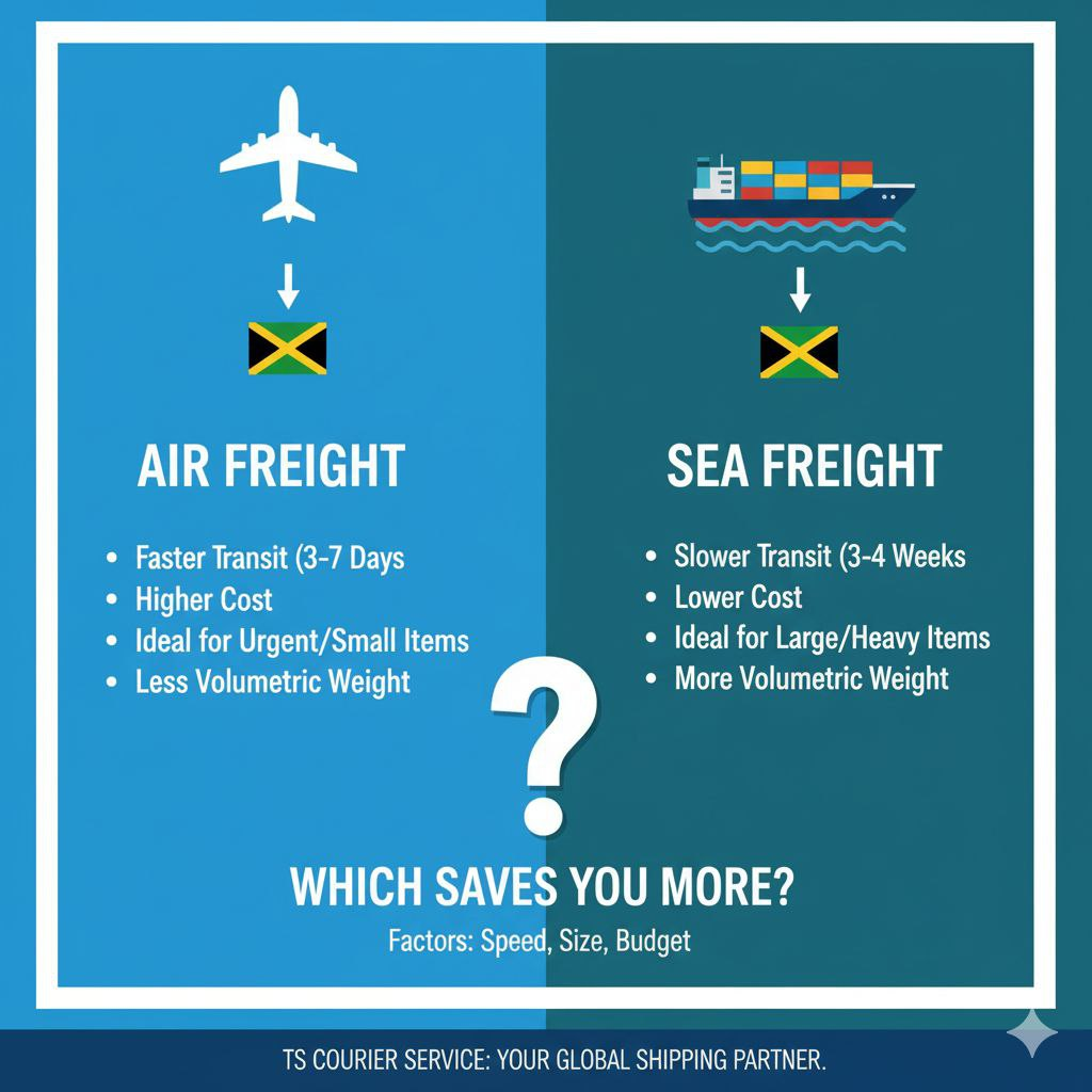 When it comes to shopping online and shipping your packages to Jamaica, choosing between air freight and sea freight can be confusing. But here’s the truth — the right method can save you serious money and time.